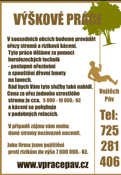 Úvod > Obec > Aktuality > Nabídka výškových prací - ořezy stromů
