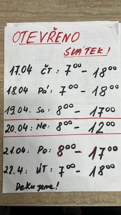 Úvod > Obec > Aktuality > Otevírací doba prodejny Martin o Velikonocích