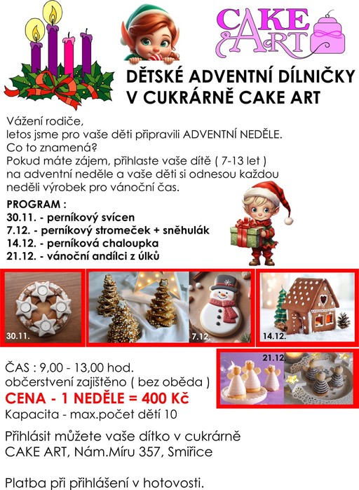 Úvod > Obec > Aktuality > Pozvánka na adventní dílničku v cukrárně Cake Art