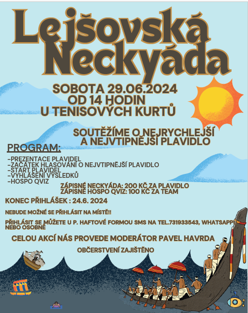 Úvod > Obec > Aktuality > Pozvánka na Lejšovskou Neckyádu - 29.6.