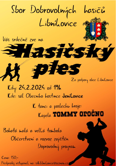 Lístky jsou v předprodeji na tel. čísle: 730 904 300 (Alena Chudá) či na mailu sdh.libnikovice@seznam.cz