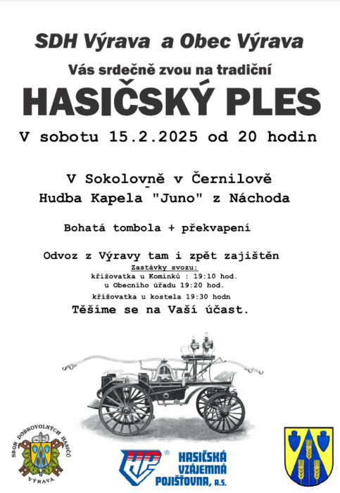 Úvod > Obec > Aktuality > Pozvánka na ples SDH Výrava v sobotu 15. února