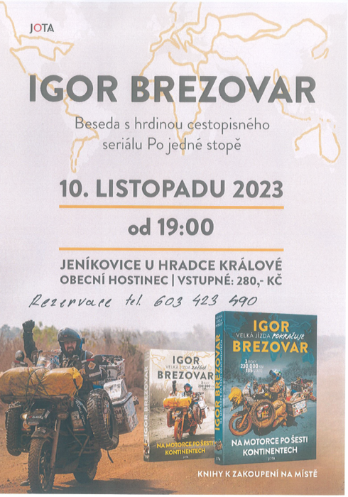 Přednáška cestovatele Igora Brezovara - Jeníkovice, 10.11.