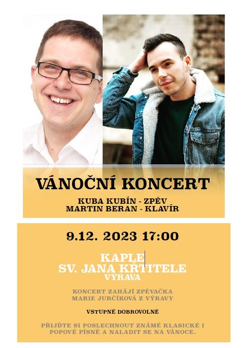 Vánoční koncert v Kapli sv. Jana Křtitele v sobotu 9. prosince od 17 hodin