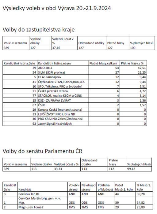Úvod > Obec > Aktuality > Výsledky voleb do krajského zastupitelstva a Senátu v obci Výrava
