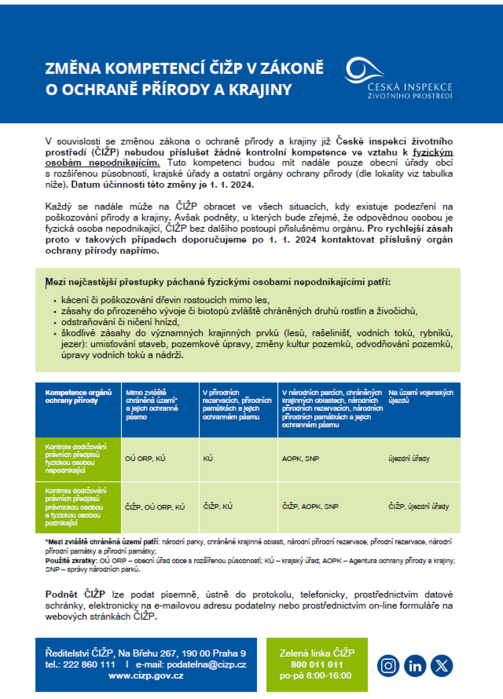 Úvod > Obec > Aktuality > Změna kompetencí ČIŽP v zákoně o ochraně přírody a krajiny