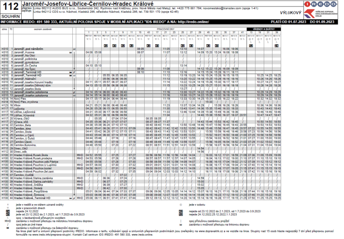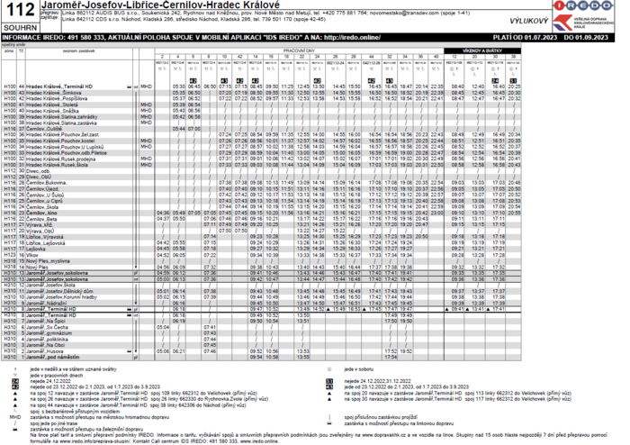 Změna odjezdu spojů na lince 112 HK - Jaroměř