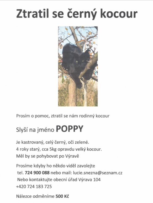 Úvod > Obec > Aktuality > Ztratil se černý kocour Poppy