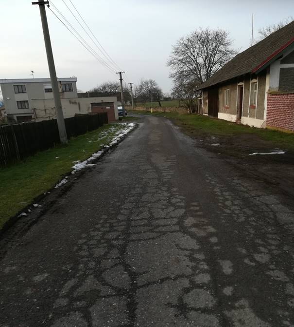 Jedná se o celkovou rekonstrukci místní komunikace. Silnice je řešena jako obousměrná komunikace délky 206,85 m a šířky 3,5 m se dvěma výhybnami. Sklon jednostranný 2,5%. Stávající konstrukce vozovky bude odstraněna a nahrazena novou zesílenou konstrukcí s asfaltovým povrchem. Součástí rekonstrukce komunikace je zřízení odvodnění pomocí UV a podélného dlážděného rigolu ze žulových kostek. Nová konstrukce vjezdů k nemovitostem se opatřila povrchem z betonové dlažby. V roce 2016 na této komunikaci obec za podpory Královéhradeckého kraje úspěšně provedla opravu propustku přes Výravský potok, a v roce 2017 obec z vlastních zdrojů provedla výstavbu stoky dešťové kanalizace pro odvedení části vody z této komunikace.