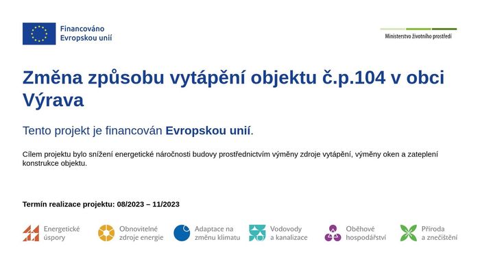 Úvod > Obec > Dotace > Změna způsobu vytápění objektu č.p. 104 v obci Výrava